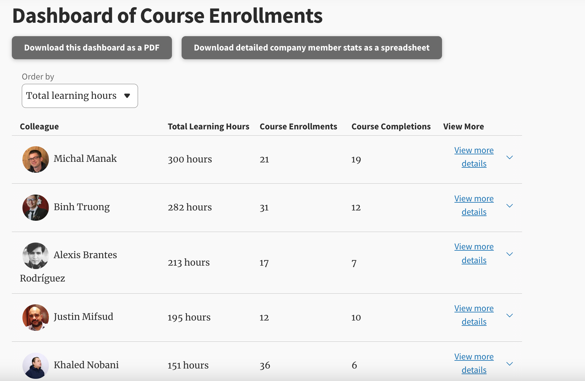 Networking is a large part of our value proposition, so we want just the right number of people inside the courses. That is also why we display the "XX % percent booked" on our course icons.