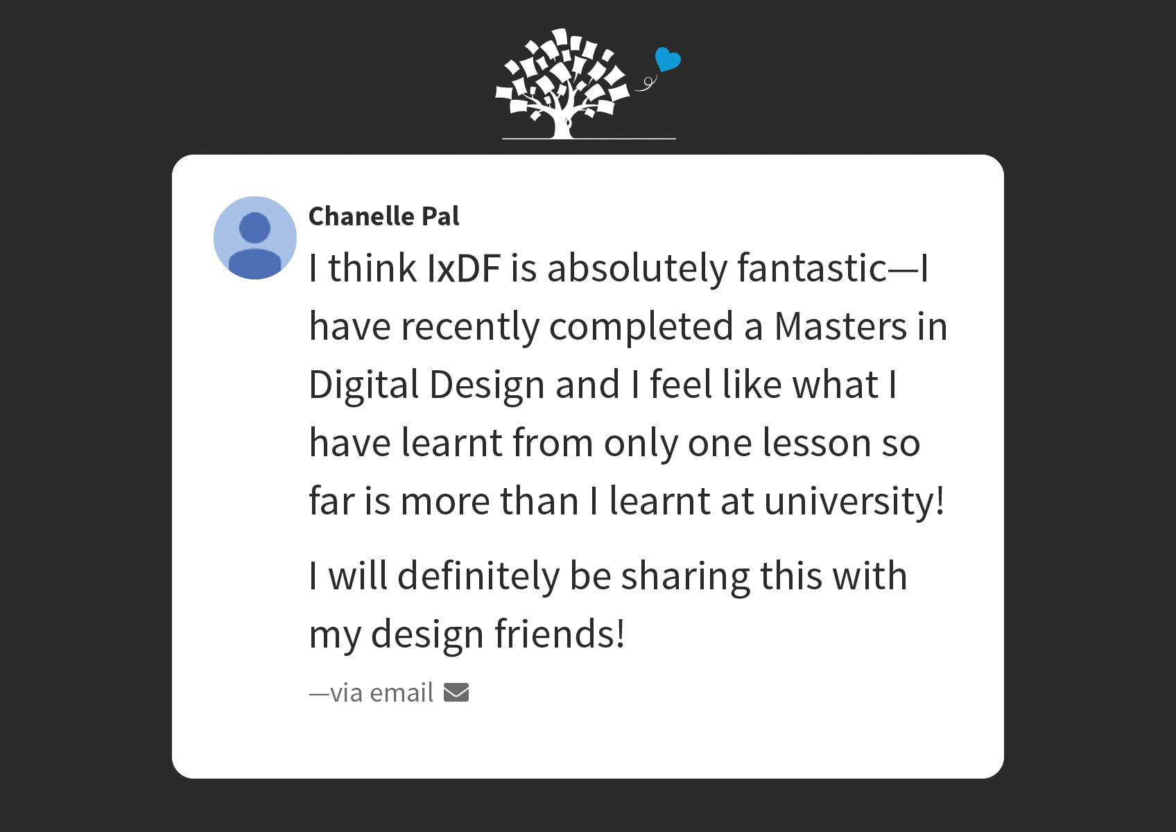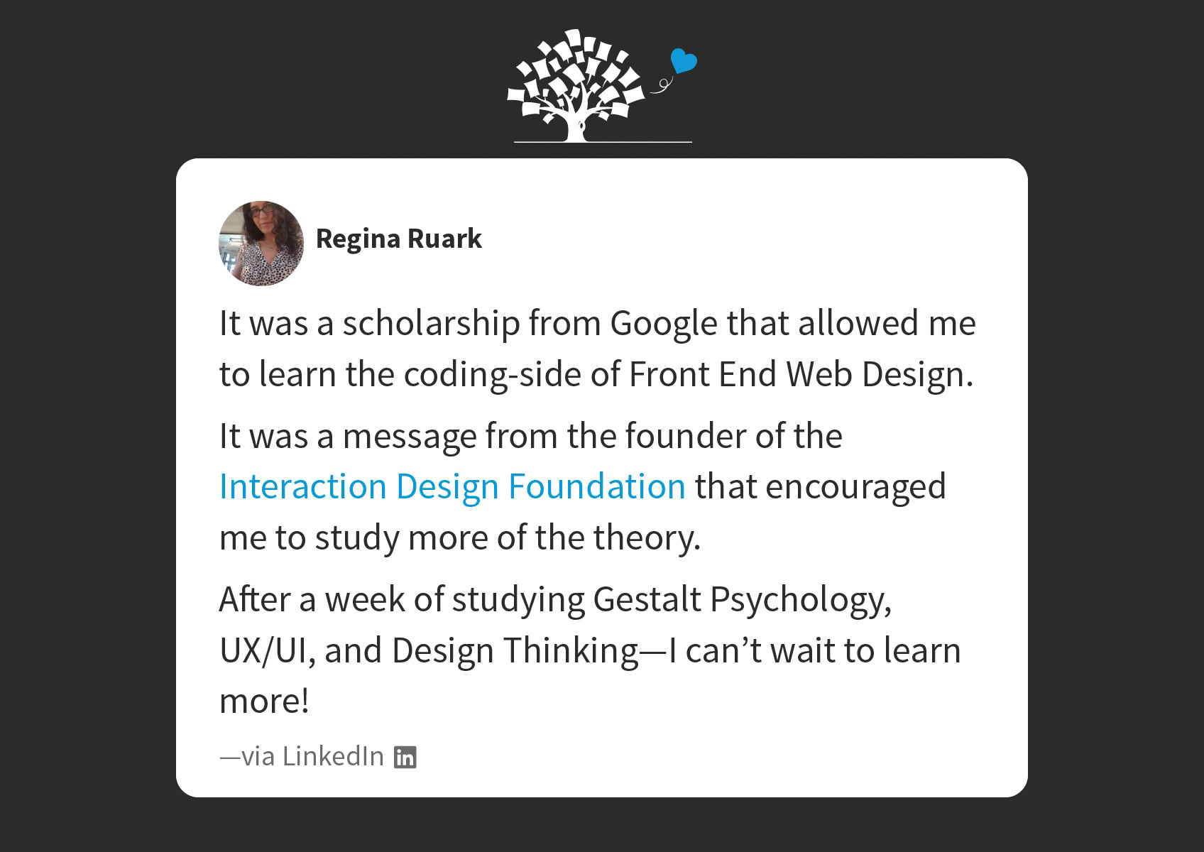 “I found the amazing quantity and quality of available UX design courses to be almost overwhelming. The primary value membership in the Interaction Design Foundation provides is unlimited free access to over 34 top of the line, high quality courses in the UX design field.”