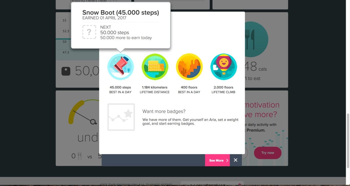 The Fitbit dashboard shows what a user must do to achieve the next badge. Although the names of the badges are connected to the category of achievements (snow boots in the case of daily steps), the names do not reveal where in the achievement hierarchy each belongs. This may make the process of earning badges seem somewhat arbitrary. However, Fitbit hits the nail on the head with its other badges, such as awarding users who make 990 lifetime miles with a ‘New Zealand’ badge, 1869 miles for ‘Japan’, and so on.